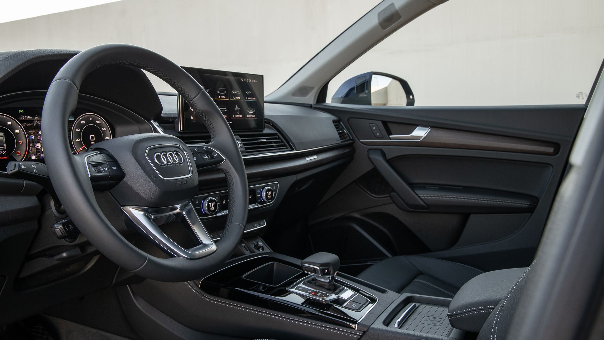 تقنية Audi Q5 قد تكون قديمة بعض الشيء مقارنة بسيارات الدفع الرباعي المدمجة الفاخرة الألمانية الحديثة الأخرى، ولكن ذلك لا يعني أن Q5 تفتقد الجودة. في الحقيقة، على الرغم من الانتقادات التي تلقاها نظام التحكم MMI الدوار، إلا أننا استمتعنا به عند قيادة طراز 2023 بسبب سهولة الوصول إلى وظائف معينة. بالإضافة إلى ذلك، نظام المعلومات والترفيه بحجم 10.1 بوصة سهل القراءة والاستجابة السريعة وسهل الاستخدام. حتى أولئك الذين لا يتمتعون بالذكاء التكنولوجي سيكونون قادرين على التكيف مع هذا النظام بسرعة.