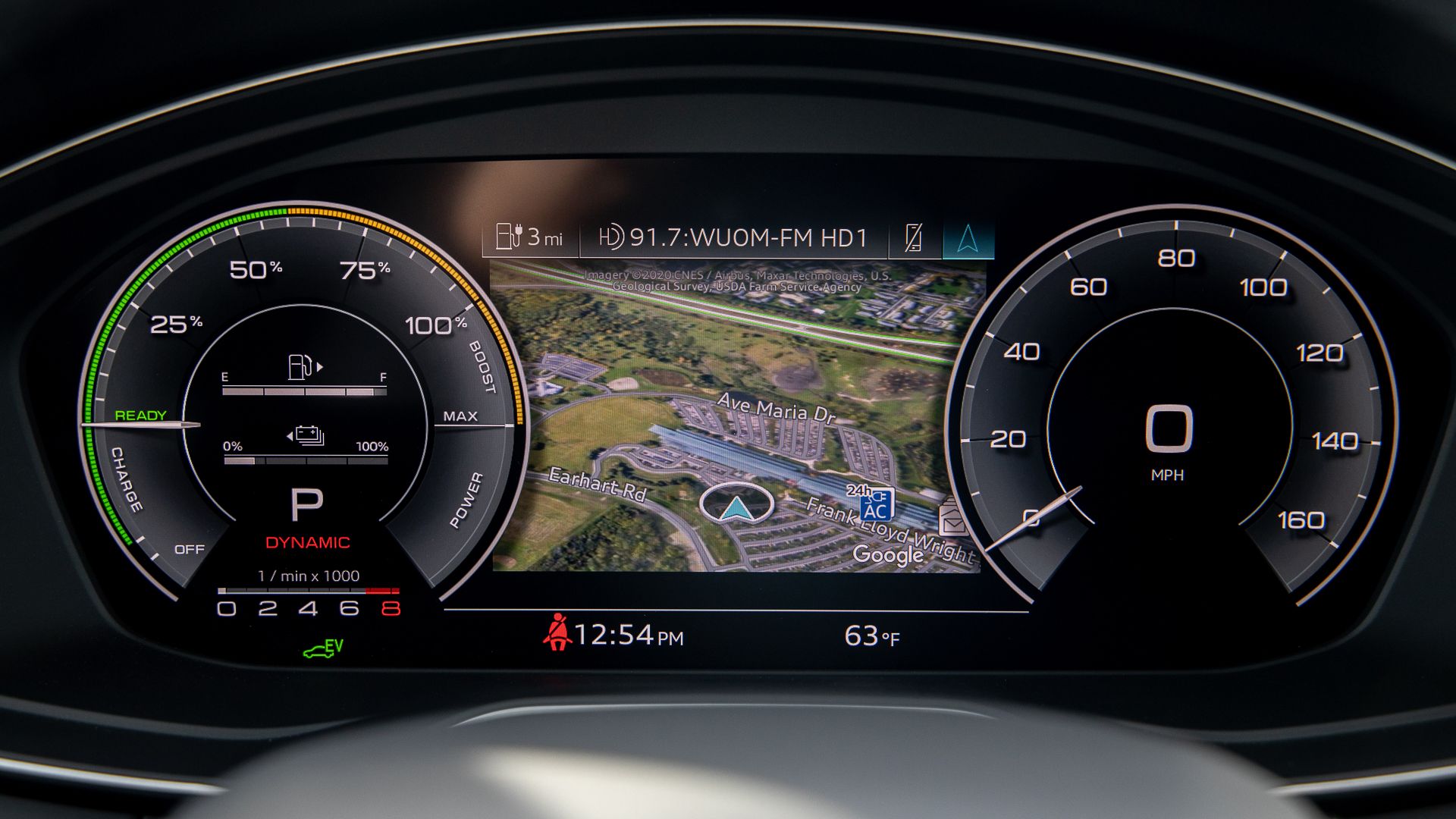 تأتي مستويات القطع المتميزة في طرازي 40 و45 TFSI مع عدادات شبه رقمية تشمل نظام معلومات السائق الملون بحجم 7.0 بوصة. بينما يوفر استخدام مستويات Premium Plus أو Prestige أو أي مستوى من طراز 55 TFSI قمرة القيادة الرقمية بحجم 12.3 بوصة من Audi، بالإضافة إلى نظام ملاحة ثلاثي الأبعاد مدمج ووسائط محددة وعناصر تحكم في الهاتف وغيرها. ويمكن تخصيص هذا النظام لعرض المعلومات المرغوبة فقط. ومن الملحوظ أن جميع الطرازات لعام 2024 تأتي بميزة التشغيل عن بُعد عبر تطبيق myAudi.
