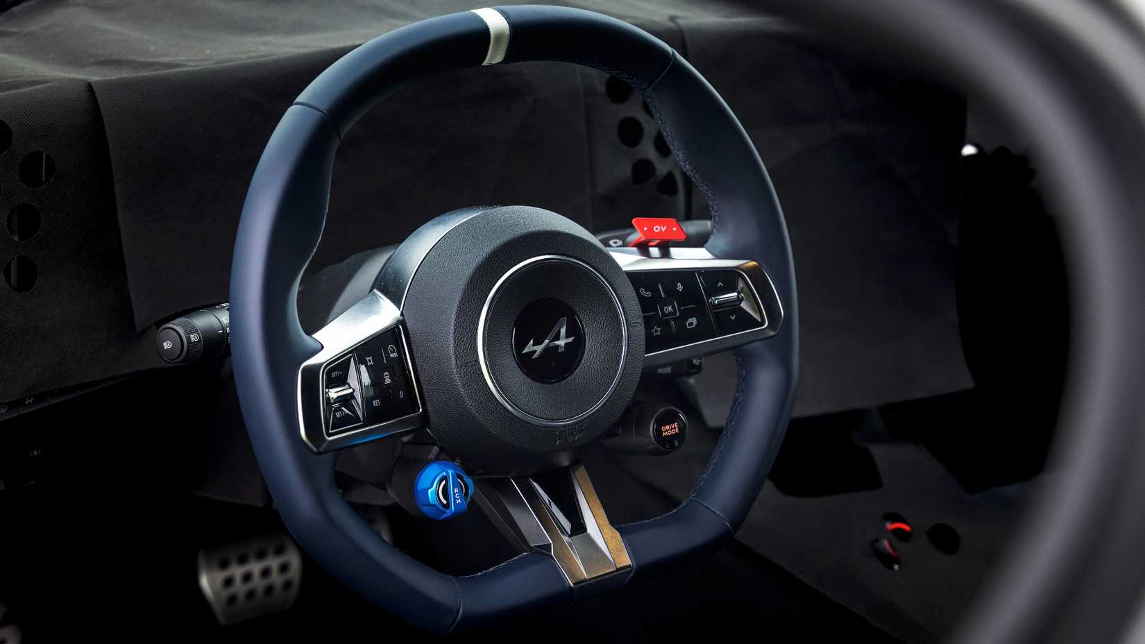 تميز التصميم الخارجي للسيارة الاختبارية بعجلات كبيرة قياس 22 بوصة مع ألواح شفافة لعرض تقنية توزيع عزم الدوران، وأقواس عجلات قوية، وشريط إضاءة أمامي وخلفي بتصميم كريستالي، ومقابض أبواب مسطحة، وبيت زجاجي مستوحى من طراز A110، وجناح خلفي وناشر هواء. يُقال إن الطراز الأعلى فئة مُصمم بثلاثة محركات، على الرغم من عدم الإعلان عن أي مواصفات مُباشرة حتى الآن.